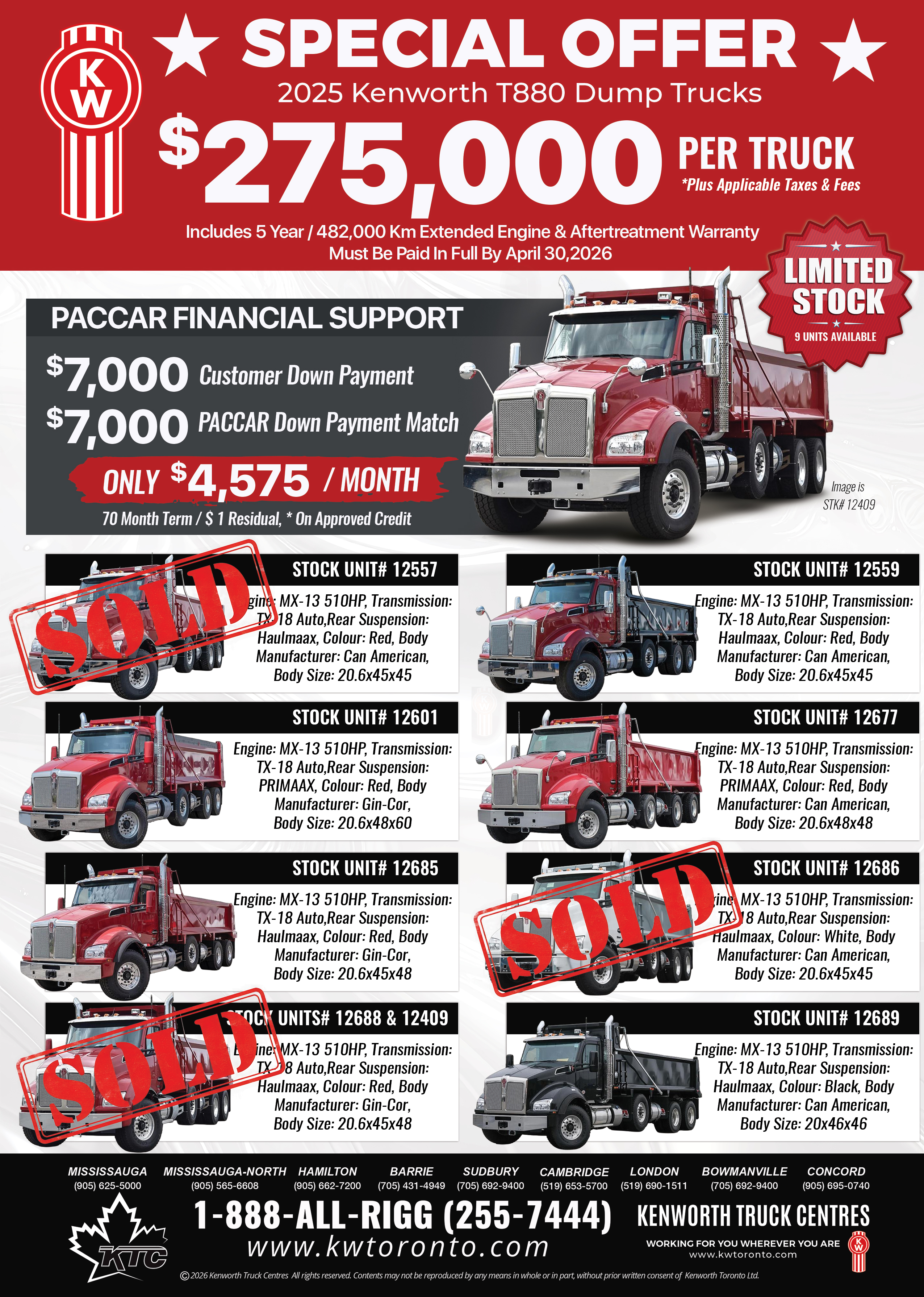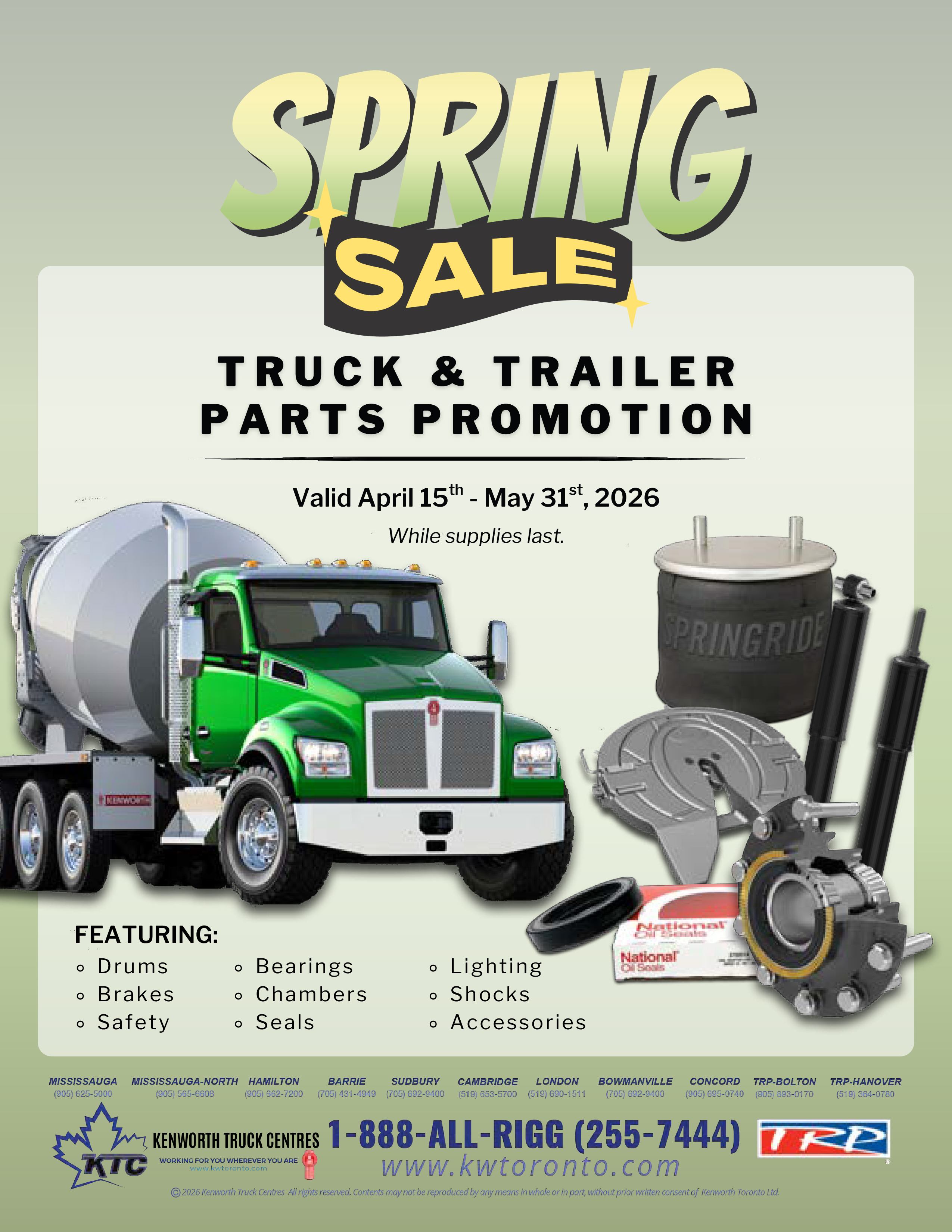 As a privately owned business we have been serving the Automotive and Heavy Duty Industries in the Province of Ontario for over 60 years and grown from one Kenworth location in 1980, to 9 Full Service locations & 2 TRP Parts Stores today. We sell and service the full line of Kenworth trucks and Medium Duty/Delivery Vehicles. Kenworth Truck Centres features an extensive parts inventory to help ensure we‘ll have what you need in stock to get you up and running as quickly as possible. Along with our Parts Departments, our Service Departments are equipped to care for you and your truck(s) in every possible way with our factory trained technicians.